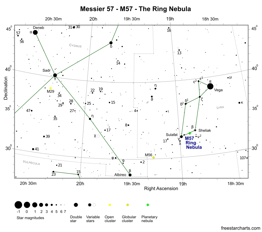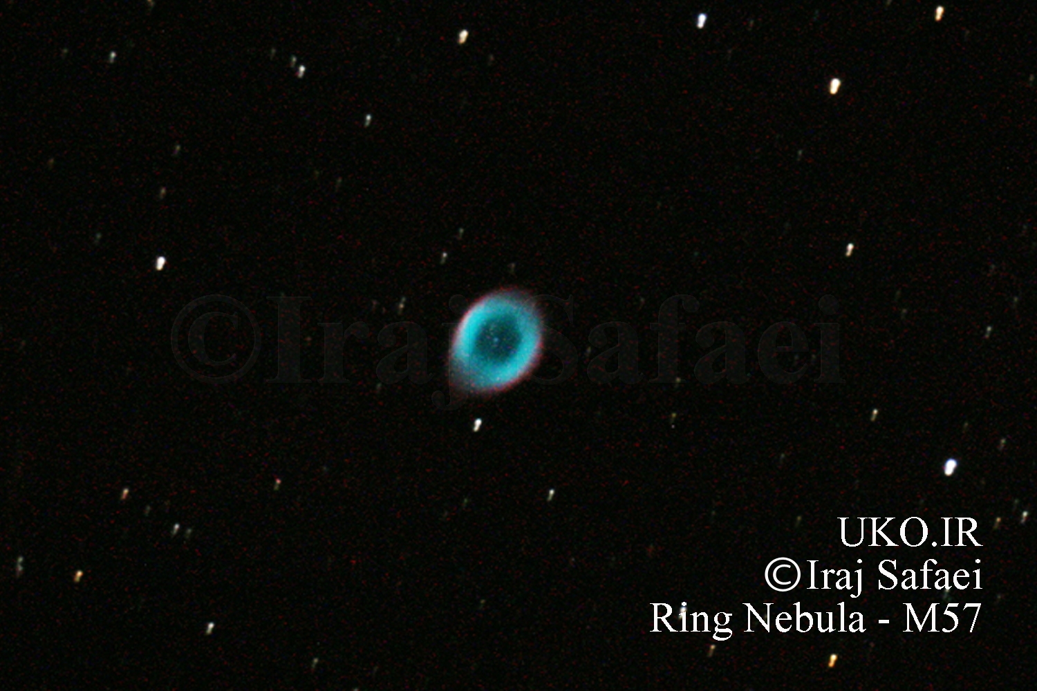 ابرگونه حلقه که در شماره ۵۷ در فهرست شارل مسیه نامگذاری شده است، یک ستارهای نچندان بزرگ بوده که به فرجام خود رسیده است. ستارگان کوچک و میانه از دیدگاه جرم همچون خورشید، پس از کاهش چشمگیر هیدروژن مرکز، به پایان عمر خود میرسند. آنگاه دچار فروریزش گرانشی شده، همجوشی هلیوم به دیگر مواد در آنها به کندی آغاز میگردد. بنابراین بخشی از جرم ستاره از پیرامون ستاره پراکنده میشود. این ابر گاز و غبار پراکنده شده، در بیشتر ستارگان ساختاری متقارن دارند. بنابراین از درون تلسکوپ همچون یک سیاره دیده میشوند. از این روی بدان ابرگونه (به تازی سحابی) سیارهنما گفته میشود. آنچه از جرم ستاره بر جای میماند، در میانه ابرگونه فشرده میشود، که به آن کوتوله سفید میگویند. در نگاره نخست که اندکی بزرگنمایی شده، ابرگونه حلقه و کوتوله سفید را در میان آن میتوانید ببینید. این سرانجام خورشید در پنج تا شش میلیارد سال دیگر خواهد بود. در نگاره دوم اندازه ظاهری این ابرگونه را در سنجش با میدان دید تلسکوپ اصلی رسدخانه (رصدخانه) دانشگاه کاشان در نیاسر میتوانید ببینید. به سادگی میتوان دید که این ابرگونه اندازه ظاهری بزرگی ندارد. در نگاره سوم جایگاه این ابرگونه را در پیکر آسمانی چنگ (به تازی صورت فلکی شلیاق) میتوانید ببینید. پیکر آسمانی چنگ در کنار پیکر آسمانی قو جای گرفته و بخشی از مثلث تابستانی است، که هنوز در ساعتهای نخستین شبهای پاییزی میتوان در آسمان یافت. تصویربرداری توسط ایرج صفایی با تلسکوپ اصلی رسدخانه دانشگاه کاشان و دوربین Canon 5D انجام شده است.