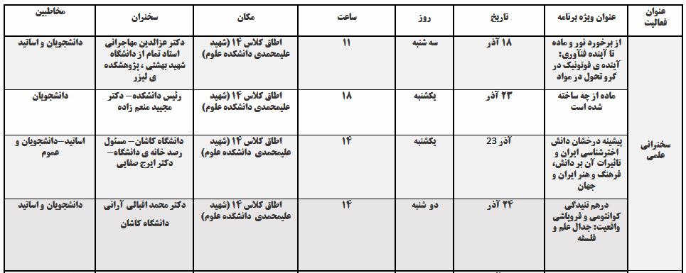 سخنرانیهای هفته پژوهش 1404 در دانشکده فیزیک دانشگاه کاشان